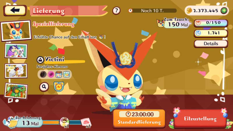 Dazu gibt es neue Lieferungen mit Hisui-Tornupto im Teezeremonie-Outfit, Frosdedje im Schneekronen-Outfit und Neujahrs-Kimono-Outfit. Alle bis 22.01.2026 möglich zu erhalten.