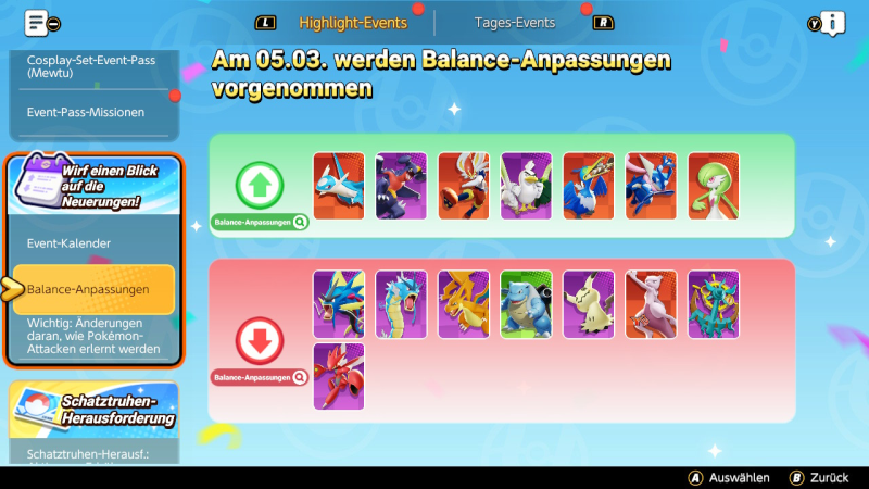 In Pokémon Unite ist ab Heute ein neuer Balance-Patch aktiv. Das bedeutet, dass Pokémon, vor allem ihre Attacken, verändert wurden. Meist werden die stärker oder schwächer gemacht und/oder die Abklingzeit verändert.